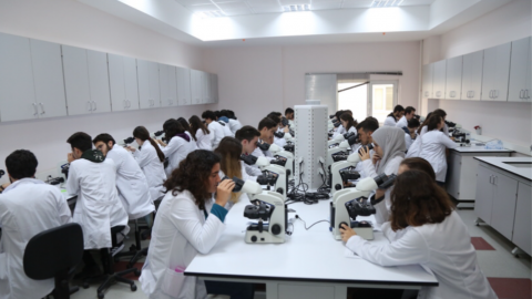 Pratik derslerde öğrenci başına bir mikroskop düşmektedir.