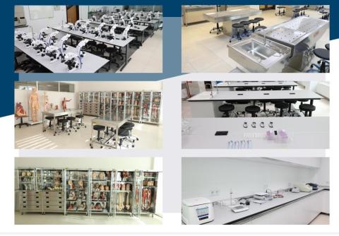 Fizyoloji: Amfide anlatılan teorik ders sonrasında derse uygun materyaller ile laboratuvarda birebir uygulamalar yapılarak pratik dersler işlenmektedir. Tansiyon ölçümü, EKG incelemesi ve yorumlaması, refleks deneyleri vs. fizyoloji pratik derslerinde yapılan bazı uygulamalara örnektir.